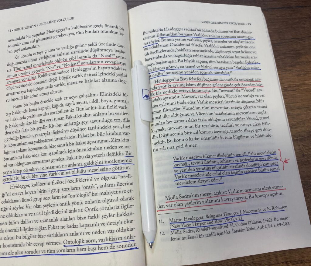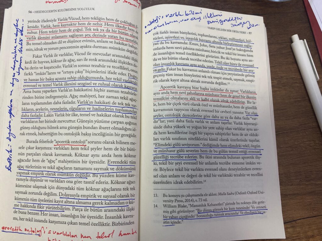 “Alman filozofu Martin Heidegger’in düşüncesine aşina olanlar, Varlık sorusunun onun temel meselesi olduğunu bilirler. Heidegger’e göre Batı düşüncesi Eflatun’dan bu yana Varlık sorusunu unutmuş ve onun yerine bilgi, bilim, özne, nesne, cevher, dünya gibi ikincil kavramları ikame etmeye çalışarak yüzlerce yıl devam eden büyük bir yanılsamanın içine savrulmuştur.”
